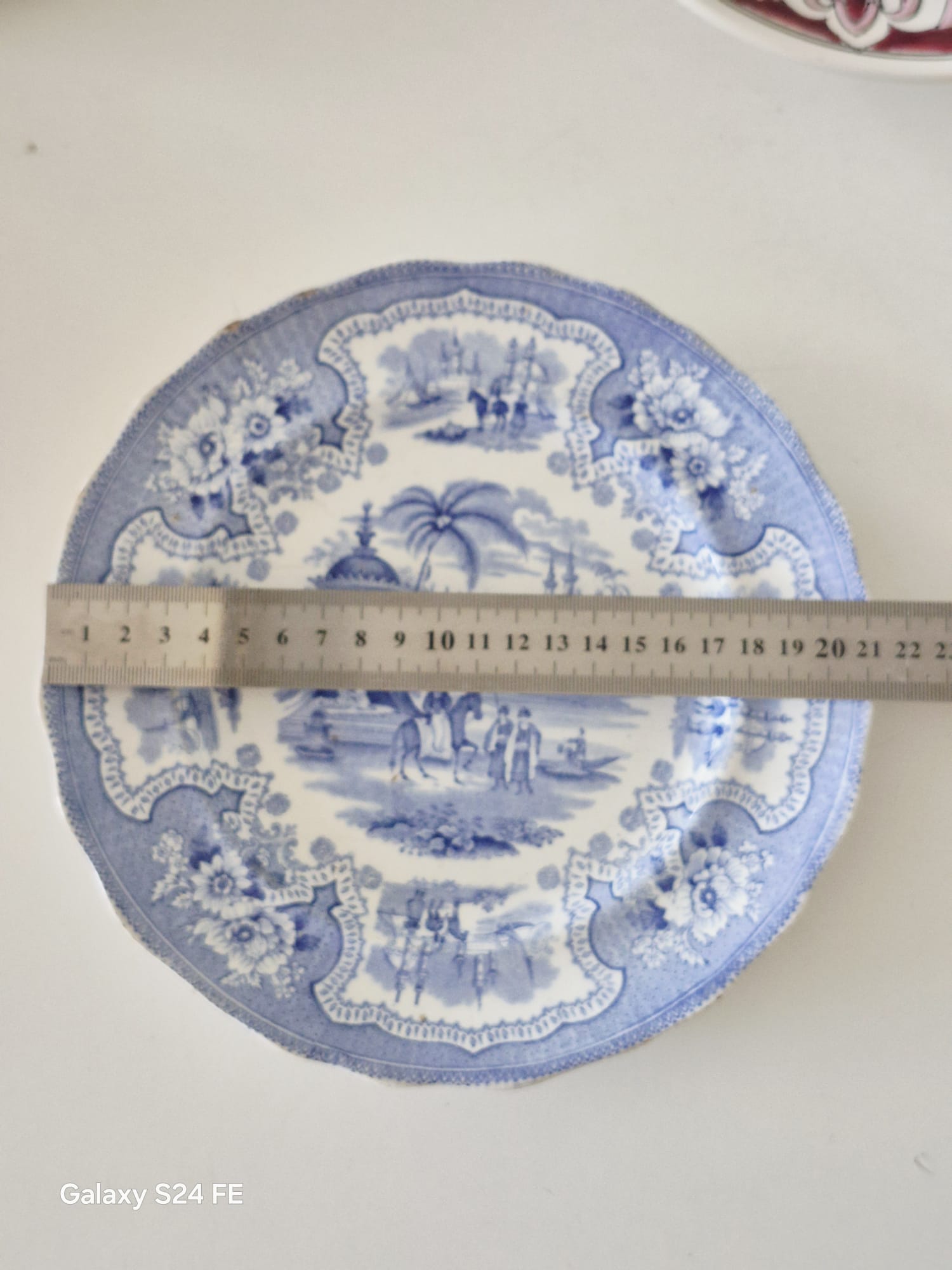 צלחת עתיקה – Staffordshire, דגם "Palestine", כחול בהיר, שנות ה־1830