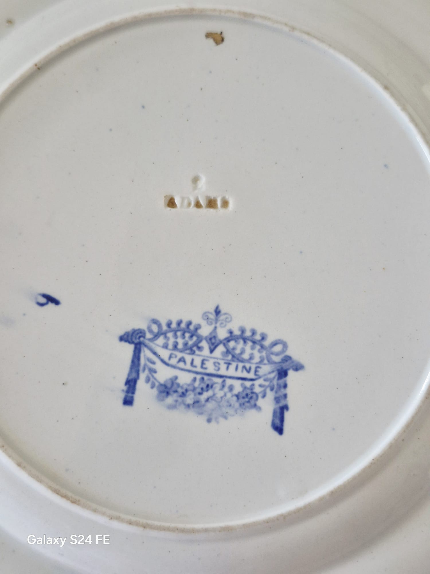 הצלחת שייכת לדגם הנדיר "Palestine" מתוצרת Adams, ומאופיינת בצביעה כחולה בהירה מרהיבה, בסגנון המובהק של התקופה.