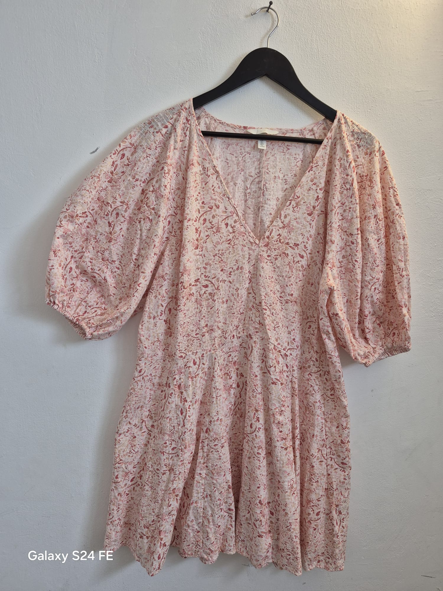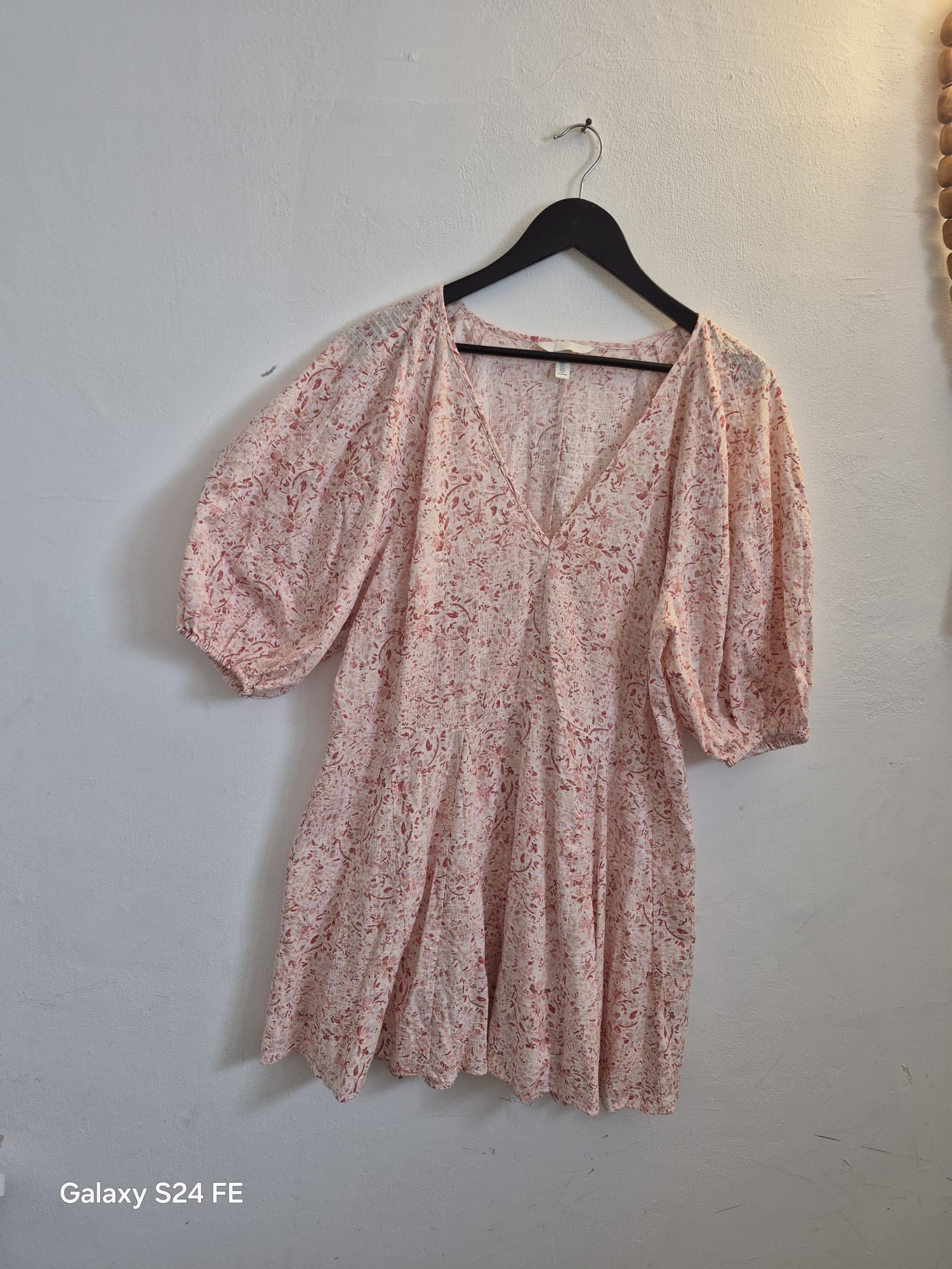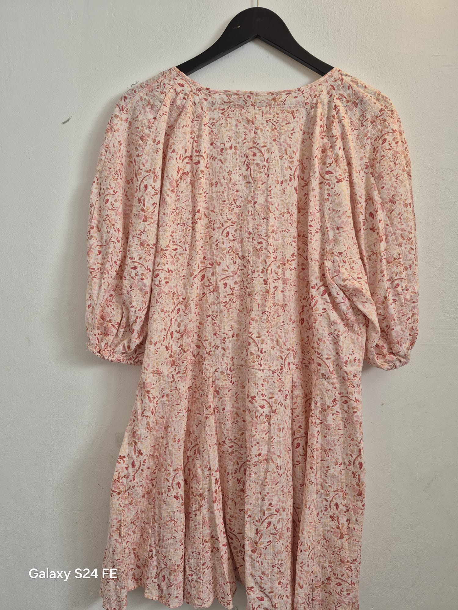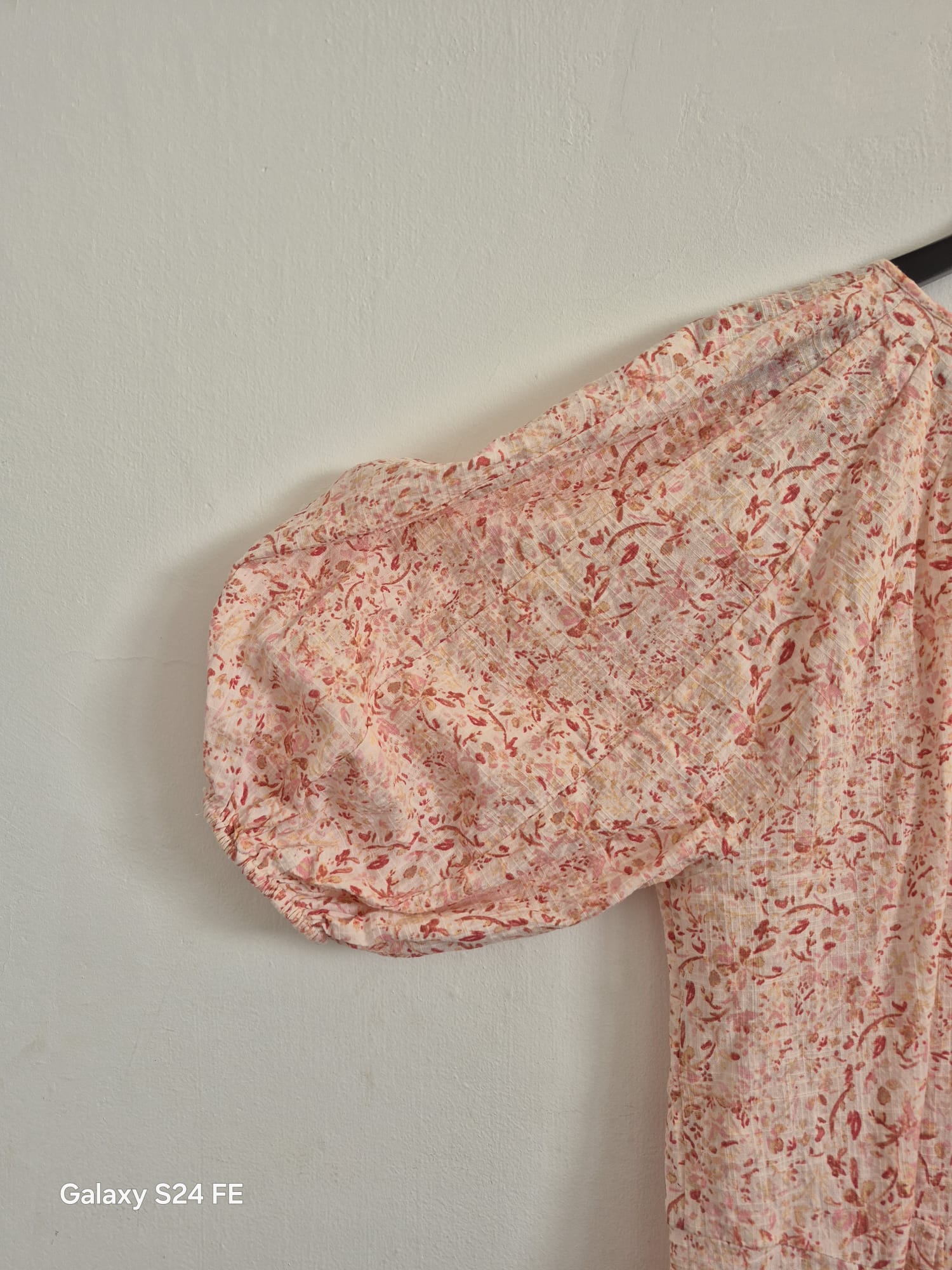100% כותנה , בד נושם ורך בגווני שמנת עם הדפס פרחים ורודים עדינים.